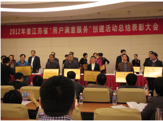 2013年4 月19日下午,江蘇省經(jīng)信委、省中小企業(yè)局、省總工會、團(tuán)省委、省婦聯(lián)在南京國際會議大酒店聯(lián)合召開表彰大會。表彰2012年度江蘇省“用戶滿意服務(wù)”創(chuàng)建活動先進(jìn)集體和個人。